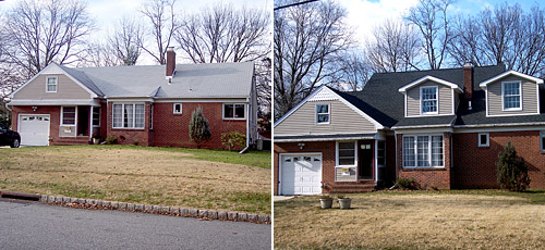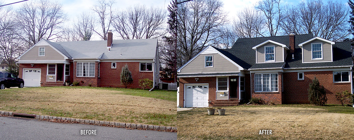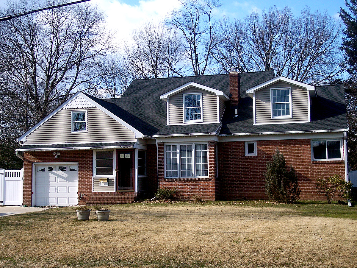 Using a Thomas K. Hoffman design, we added two dormers and a two-story rear addition to this Clark New Jersey home in order to give the family a more spacious, comfortable living environment. With construction now complete, the first floor has a large master bedroom / bathroom suite and a new kitchen open to a large family room. The second floor now has 3 bedrooms, a new bathroom, and a laundry room.